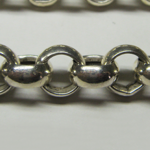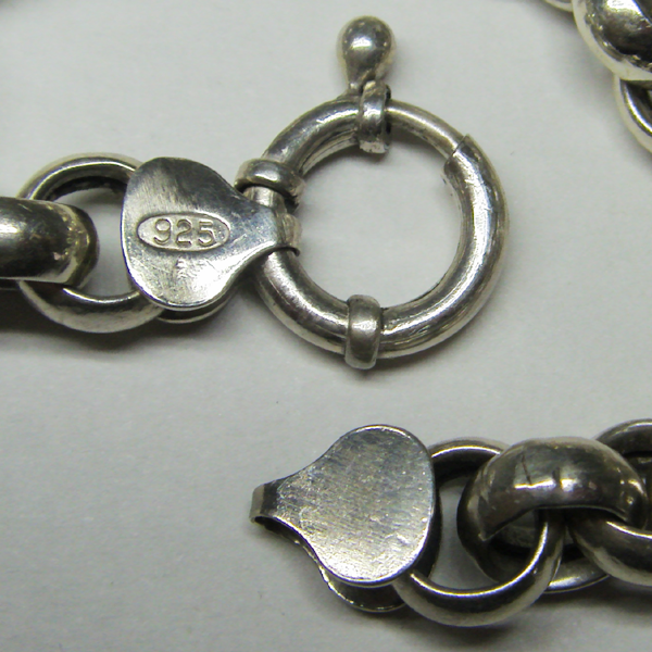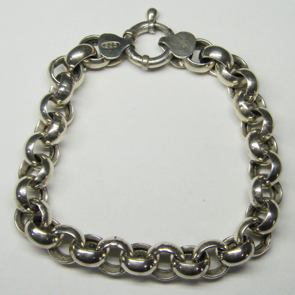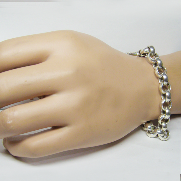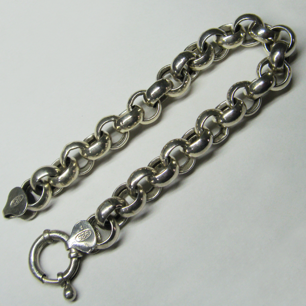 Silver 925 bracelet in the model style Rolo, with a mariner clasp. Diameter of the link 9 mm. Length 19 cm. Weight 15,4 g.