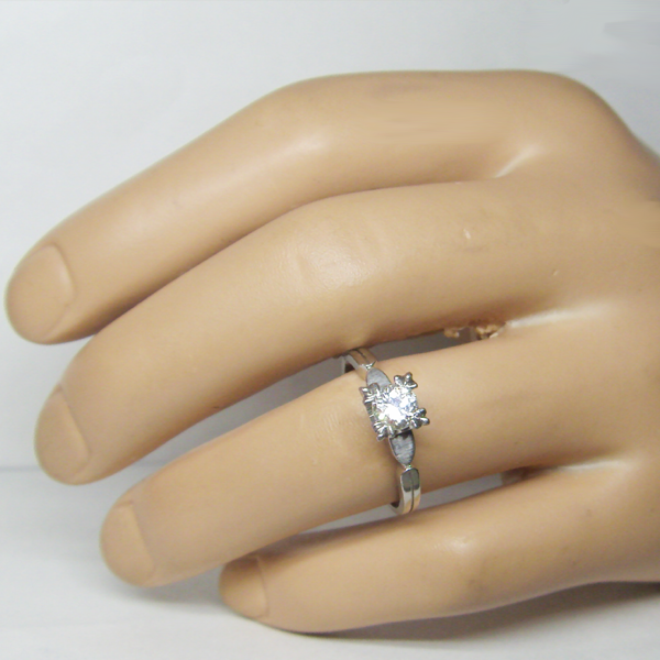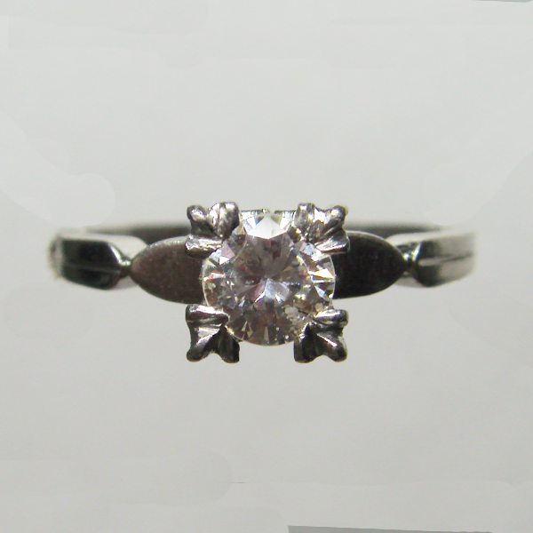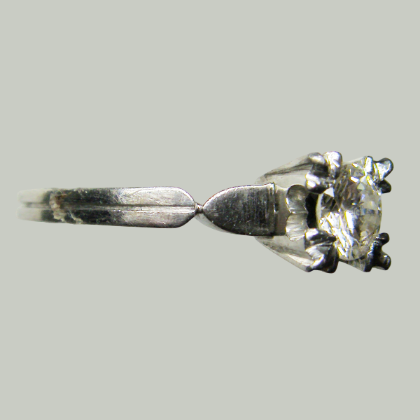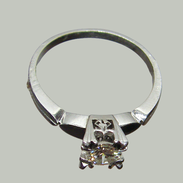 Anillo de platino de tipo solitario con un brillante de 0,39 ct. aproximadamente. Talle: N° 13. Peso: 3,5 gramos.